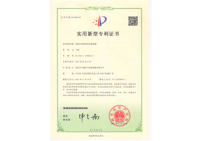实用新型专利证书