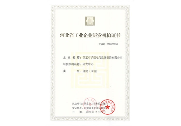 河北省工业企业研发机构证书